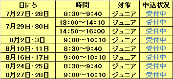 夏休み特別教室のWEB予約状況(6月20日現在)は以下の通りです。
