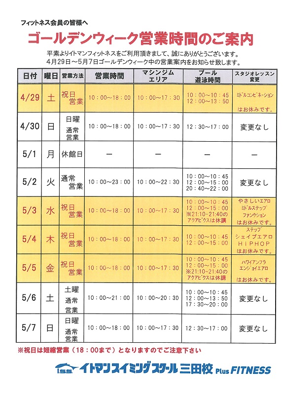 4/29、5/3〜5は祝日営業