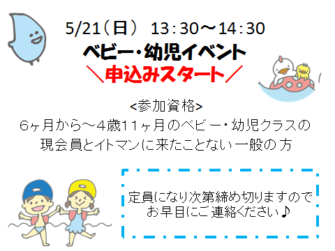 【ベビー・幼児クラス】イベントの申し込みを開始します!