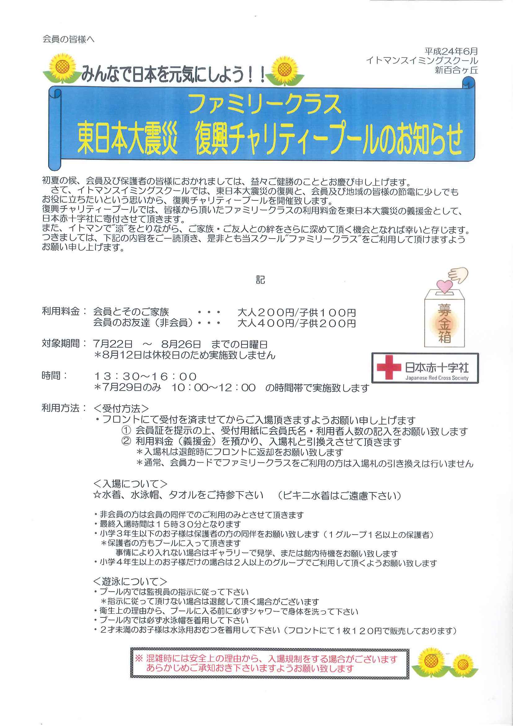 ★ファミリークラス『東日本大震災 復興チャリティープール』好評開催中!★