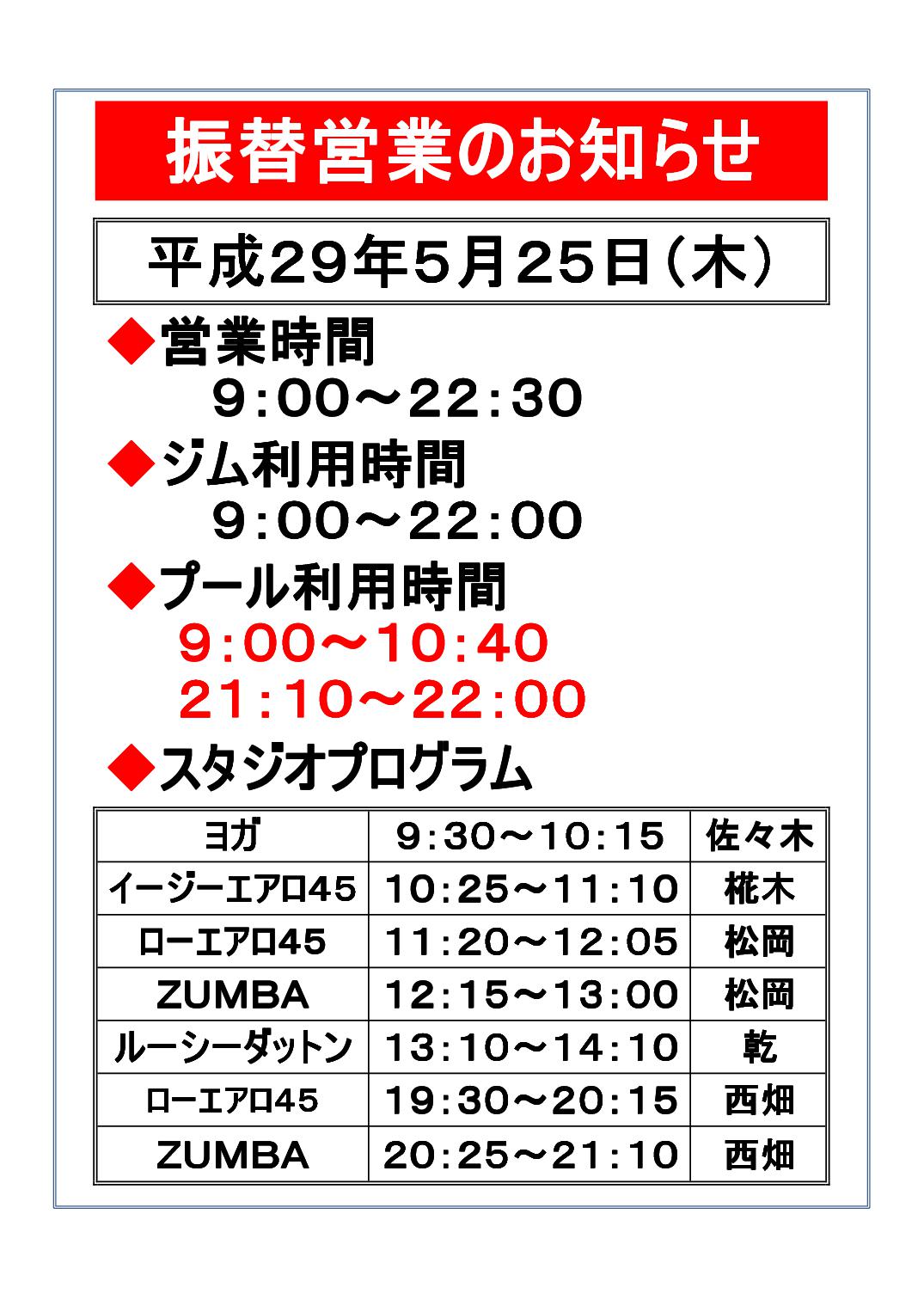 5月31日(水)全社研修会の為、臨時休館日とさせていただきます 5月25日(木)が振替営業日となります。