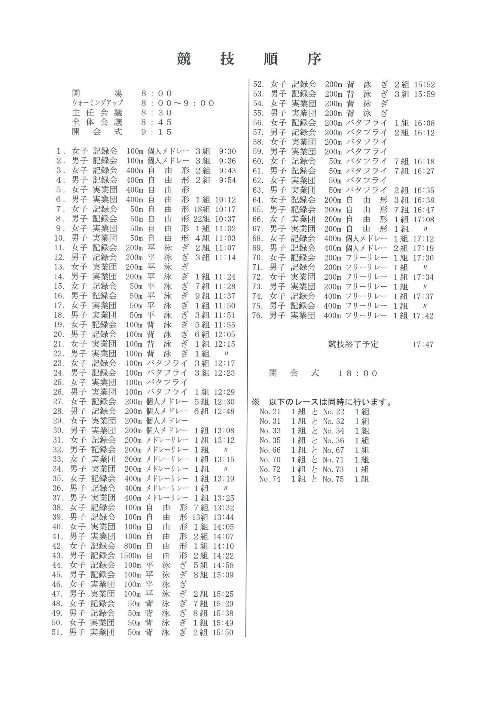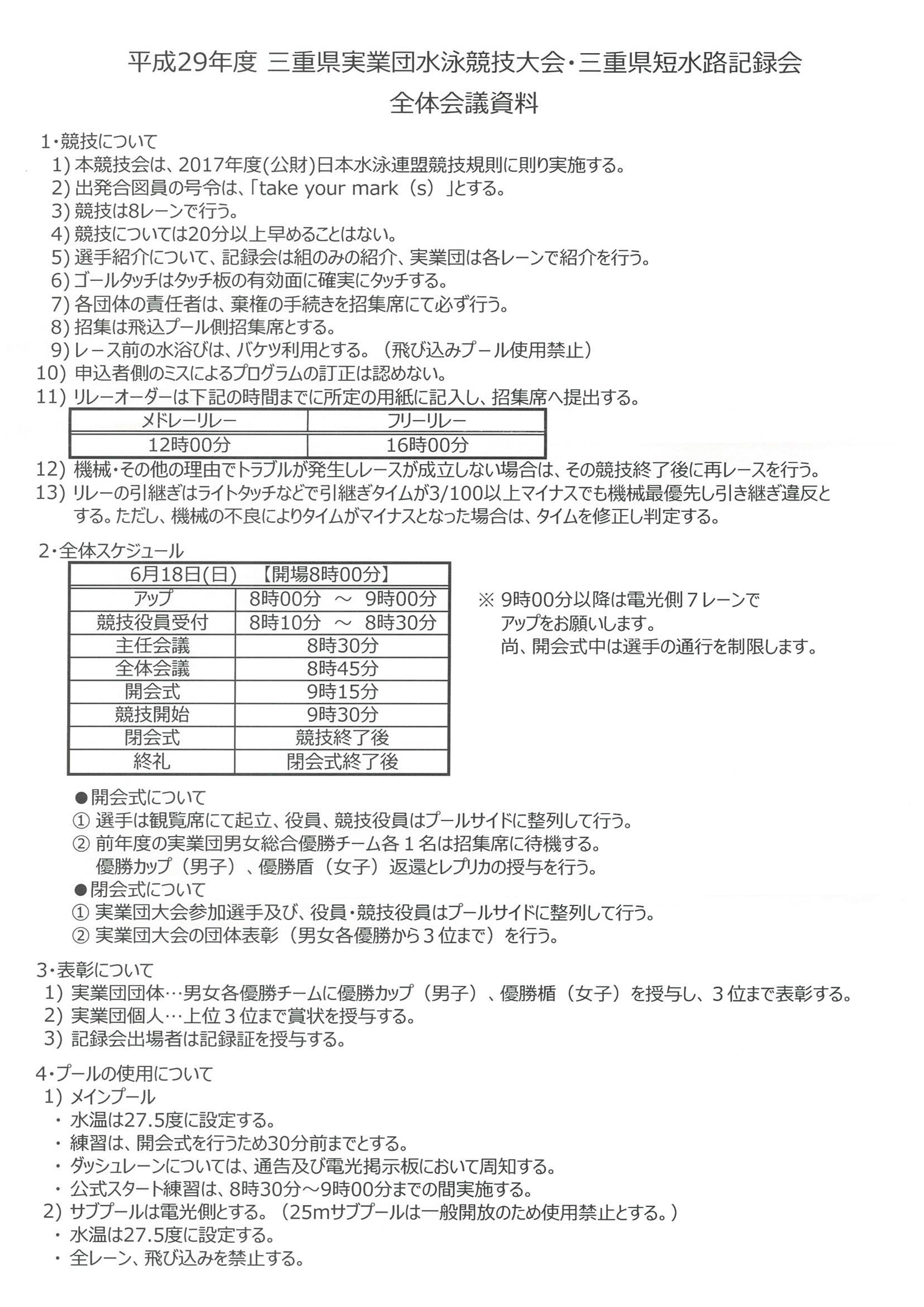 三重県短水路記録会 試合要項
