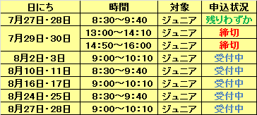 夏休み特別教室のWEB予約状況