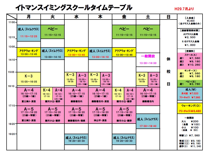 2017.7月度より 大人クラス授業時間を変更させていただききます。