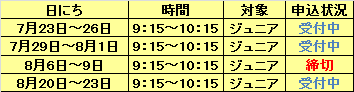 夏休み特別教室のWEB予約状況