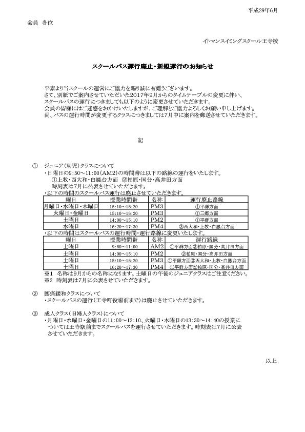 2017年9月〜スクールバス運行廃止・新規運行のお知らせ
