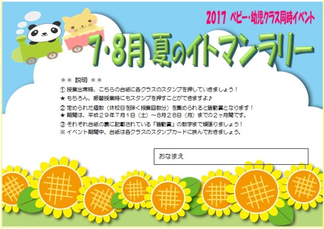 (表面) 7月初回の授業時に、スタンプの台紙を配布します。