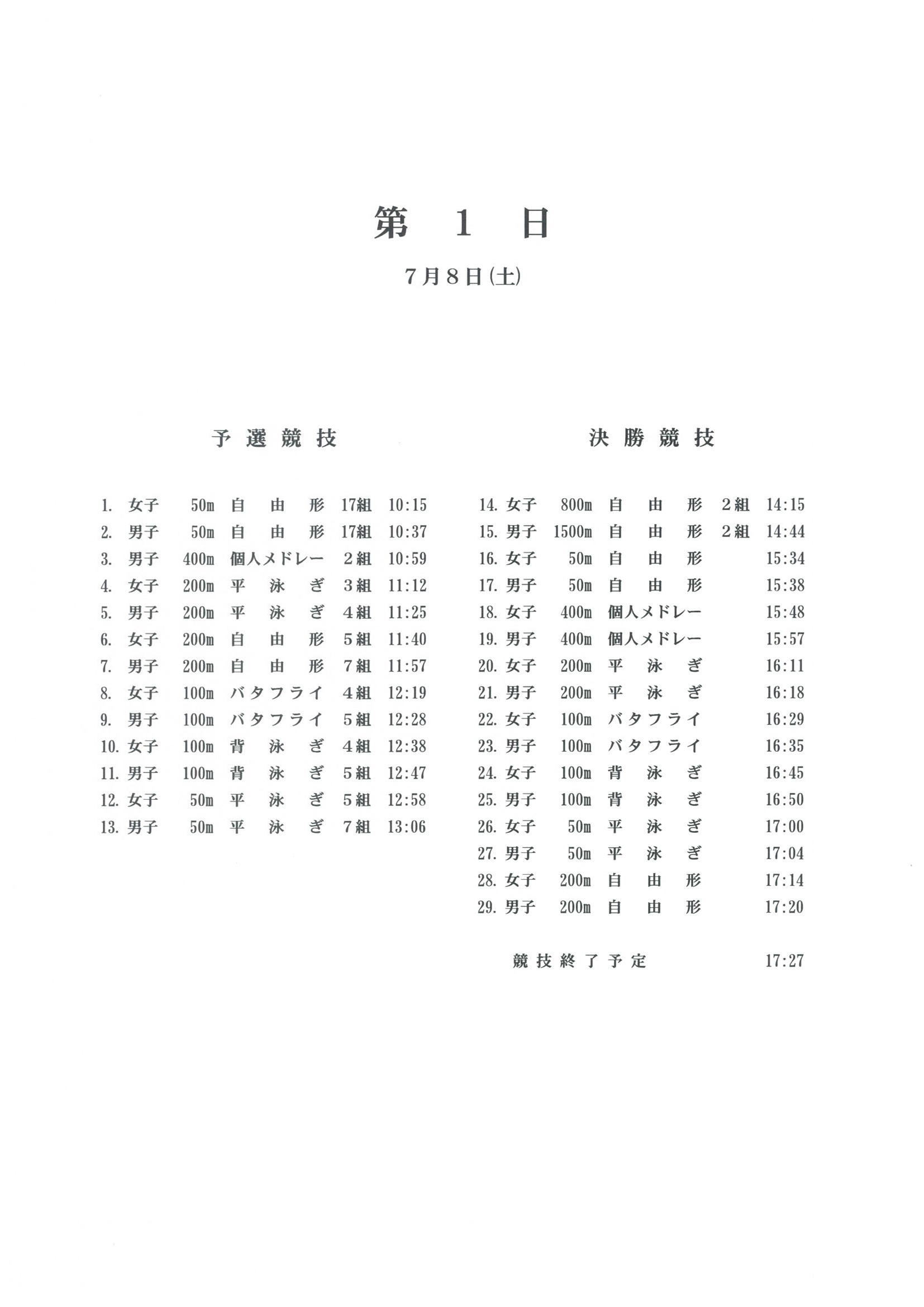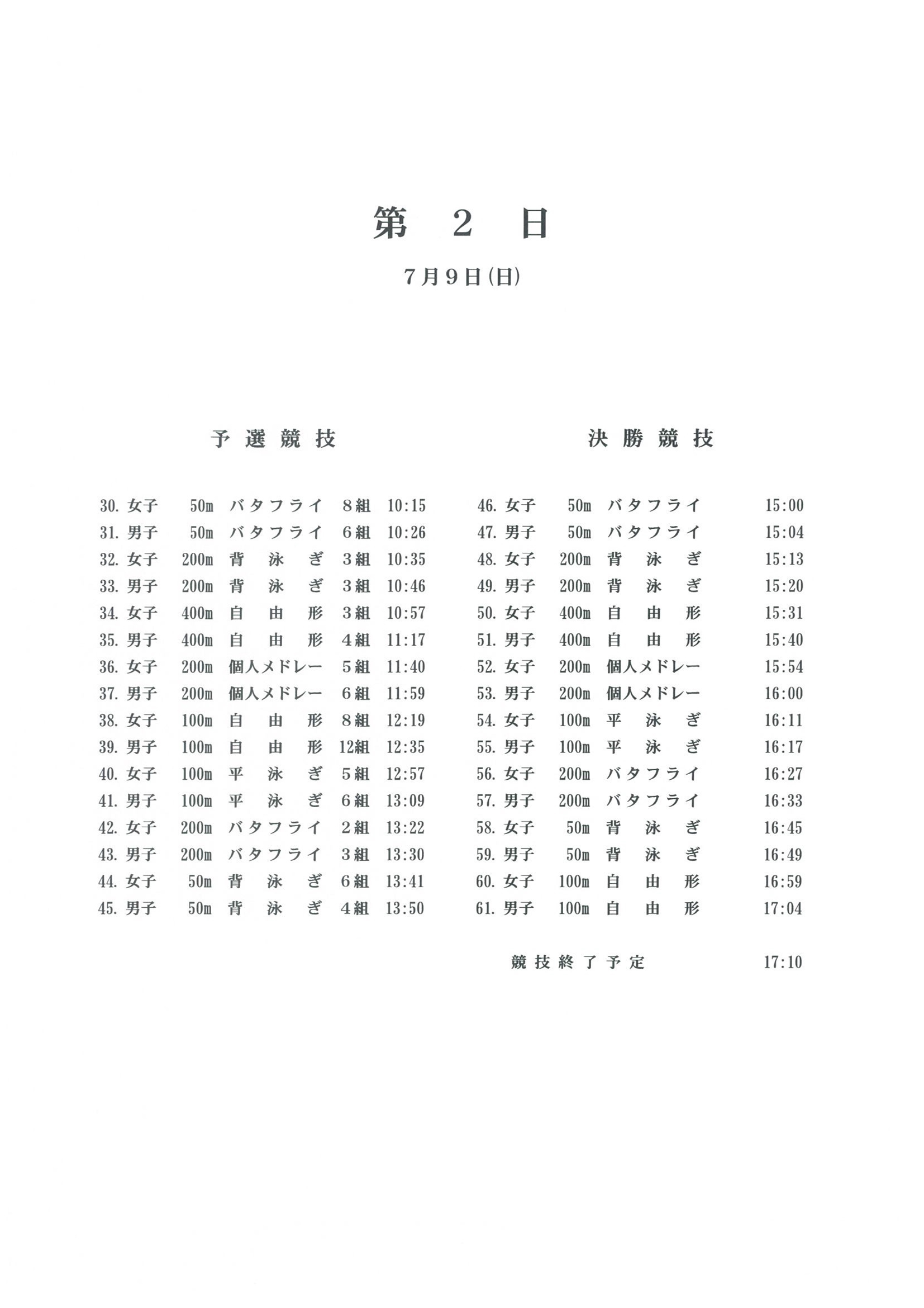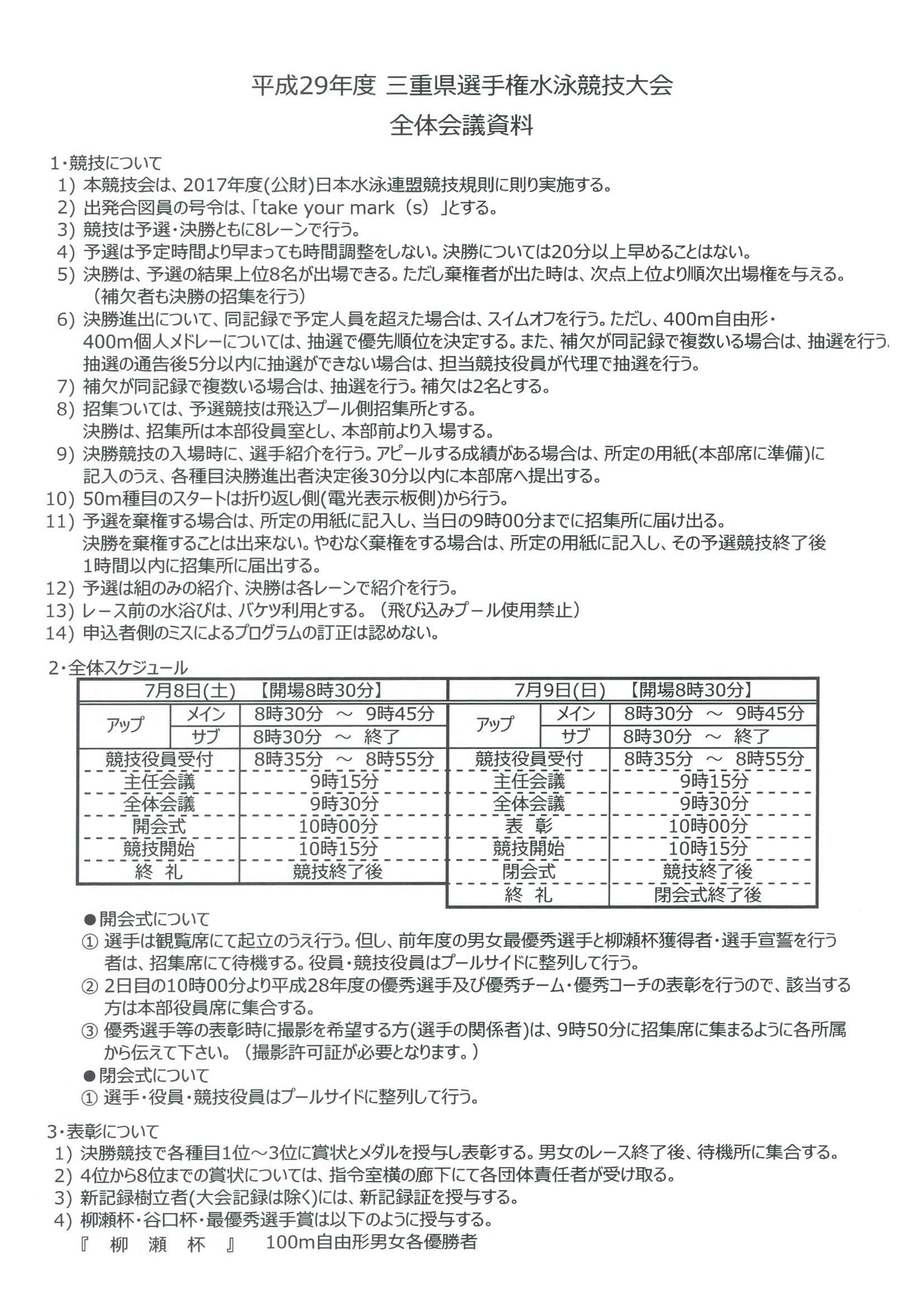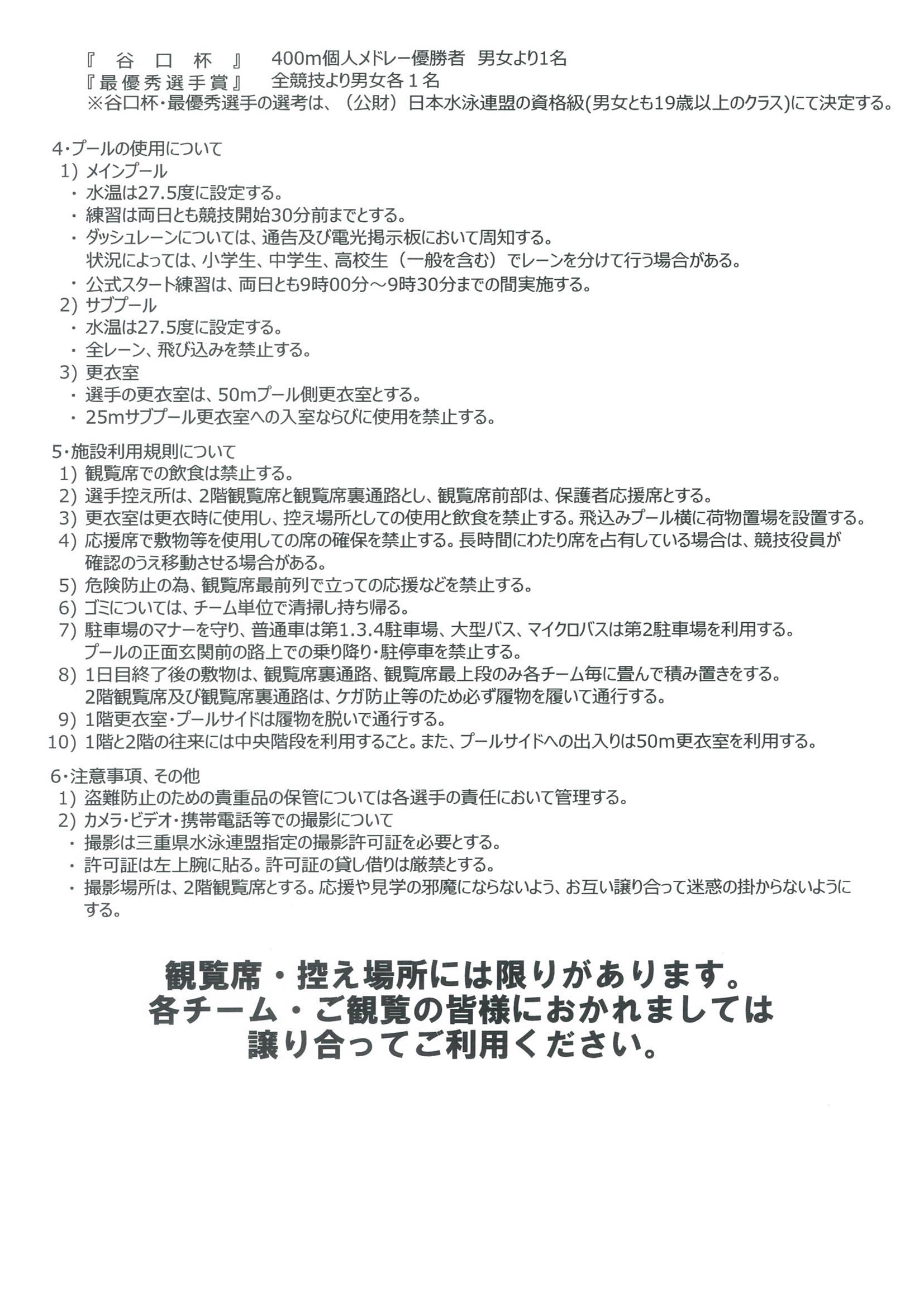 三重県選手権水泳競技大会 試合要項
