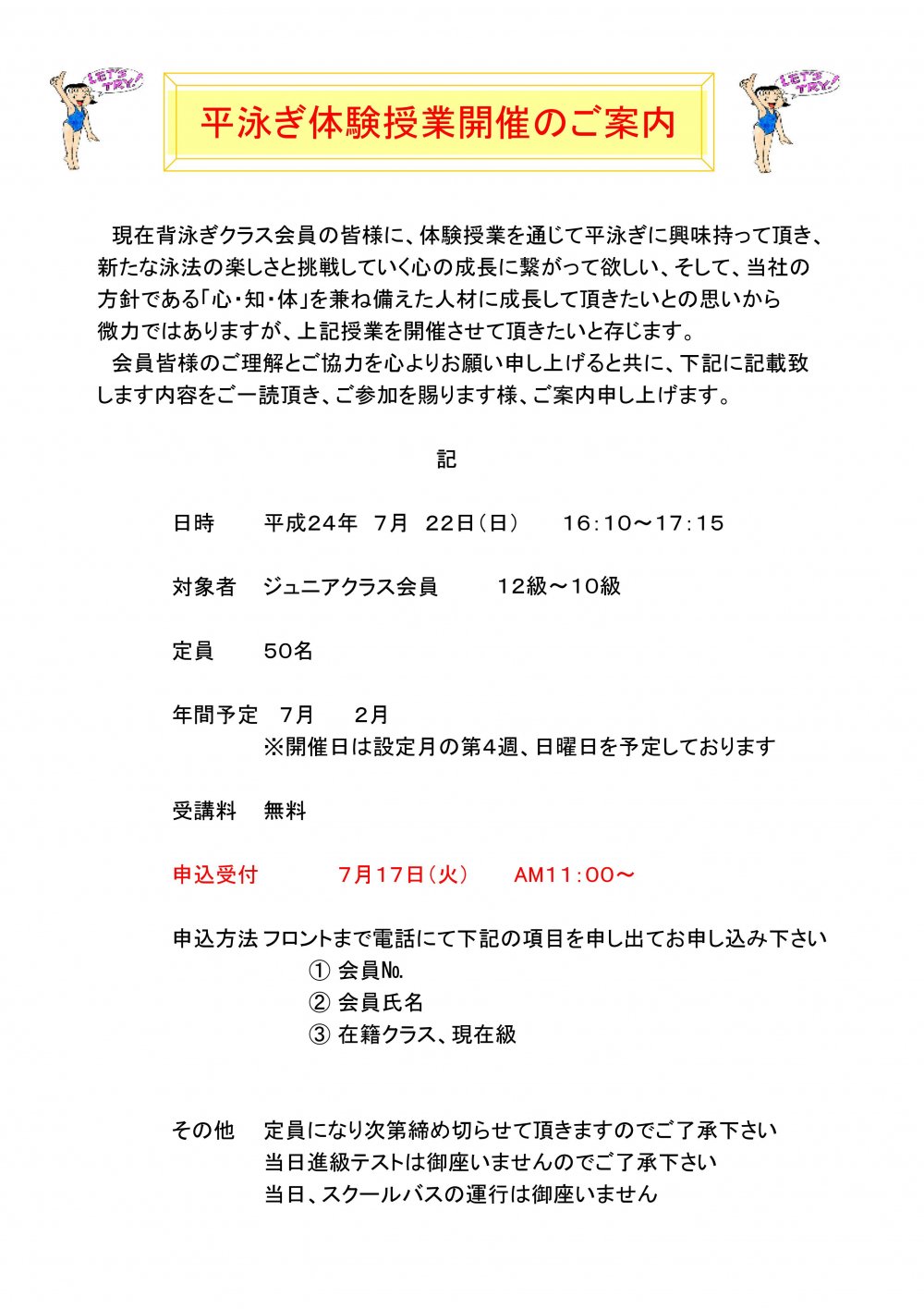 ★12〜10級の皆様へお知らせ★