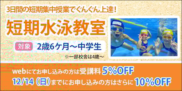 ☆重要☆ 〇こちらのフォームにお申し込み後、数日以内に体験についてのお電話を差し上げます。その際にお子様の泳力等を伺い、仮予約完了となります。 ※お電話に出られない場合はキャンセルとなる場合がございます。ご了承ください。 〇仮予約後、事前にご来校いただき、申込書の記入・物品のお渡し(購入)等を行います。 その際、公式インスタグラムフォローをしていただくと、受講特典として帽子・カードケースをプレゼントいたします。 ※フォローしていただけない場合は、帽子(660円)カードケース(103円)をご購入いただきます。 〇ヘルパーが必要なクラスの方で、指定のものをお持ちでない場合はお申込み時にご購入をいただきます。(691円) 〇1日目と2日目で授業時間が異なる期間がございます。 授業は両日とも1時間授業です。