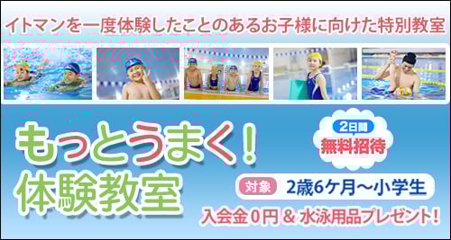 イトマンで泳げるようになろう!スイミングおよびイトマンをはじめて体験するお子さまが対象の無料体験授業
