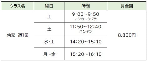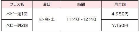 どちらのクラスもフリーチョイス制のクラスとなるため、設定されている曜日・お時間の中で