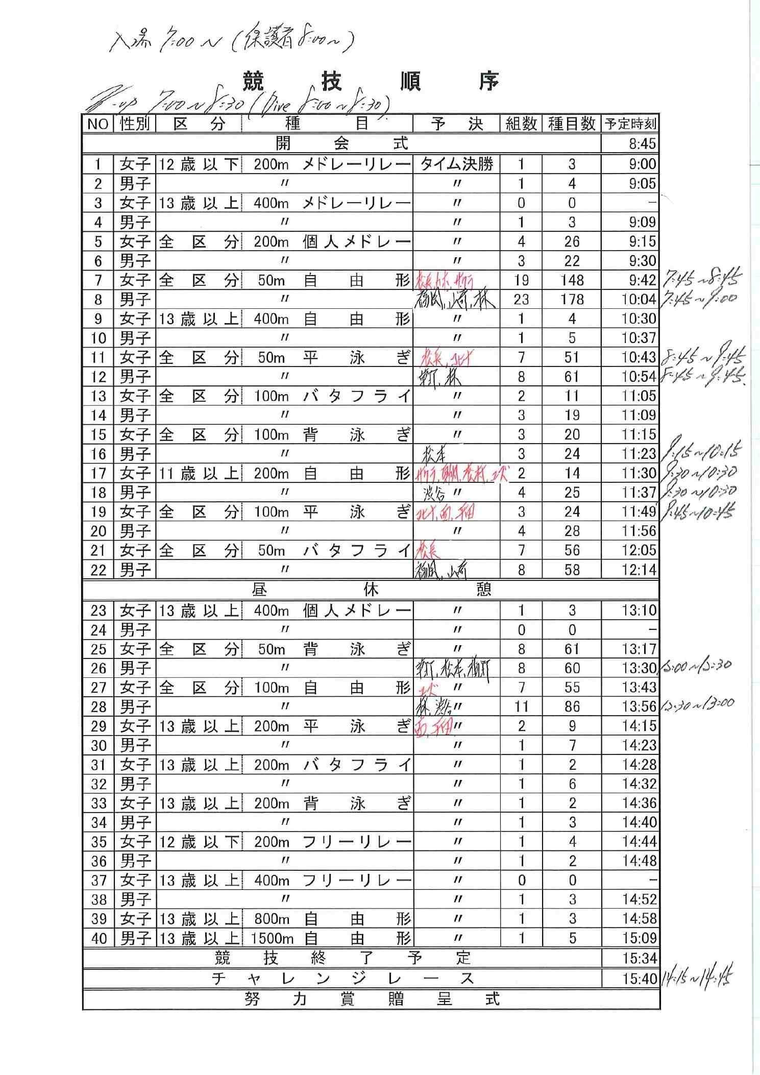 3/1(日)に行われる「北九州水泳記録会」の注意事項です