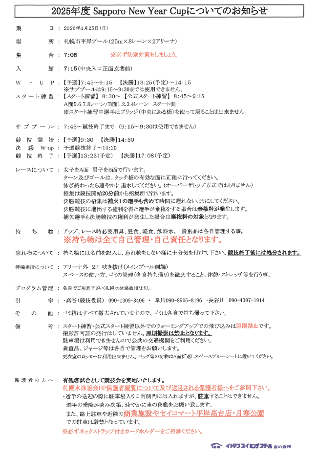 第48回全国JOCジュニアオリンピック春季水泳競技大会北海道予選会のお知らせ!