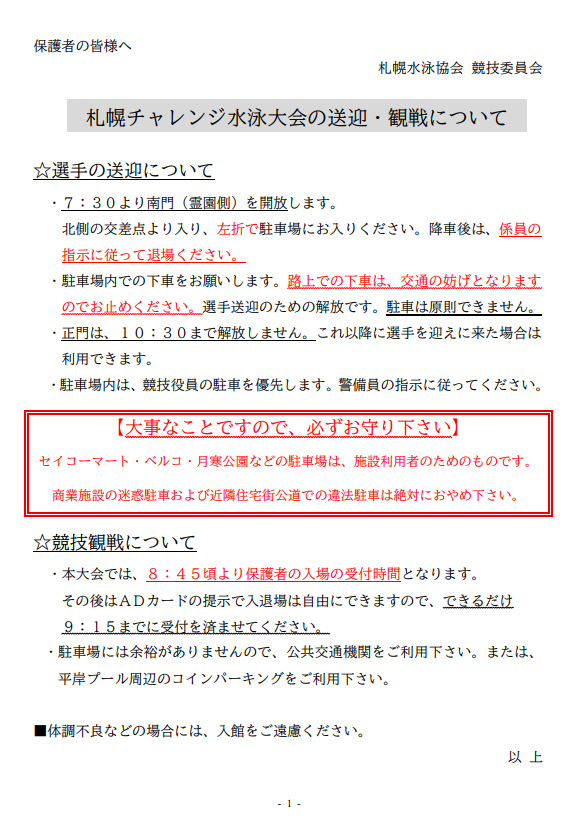 第12回札幌チャレンジ水泳競技大会一次要項についてのお知らせ!