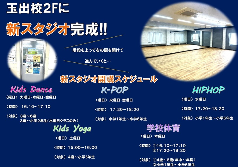 玉出校の2Fに新しく完成したスタジオで皆様をお待ちしております。